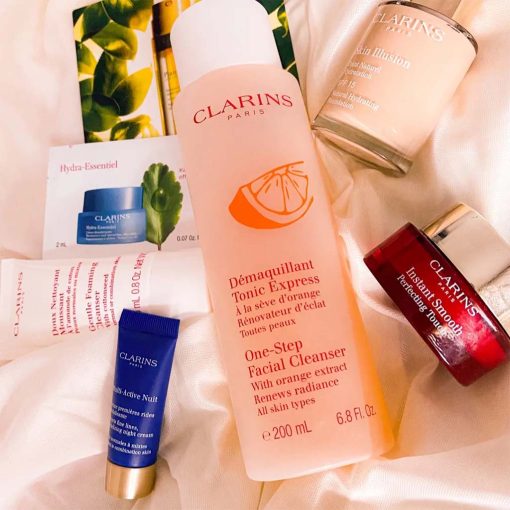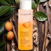 Clarins One-Step Facial Cleanser is a daily cleanser designed to remove impurities and makeup while being suitable for all skin types. It features a potent 2-step formula that provides a thorough cleanse and a rich, nourishing sensation. The formula incorporates moringa seed extract and orange extract to enhance its cleansing and softening effects. Moringa seed extract deeply cleanses and refines the skin, helping to restore its natural radiance. Orange extract contributes antioxidant protection to the skin and offers additional benefits such as anti-inflammatory, skin lightening, and antimicrobial properties. Cleansing is considered the first and most important step in a skincare routine. By thoroughly cleansing the skin, impurities and dead cells that can block the skin surface and clog pores are removed. The Clarins One-Step Facial Cleanser simplifies this step, requiring just a single swipe to free the skin from makeup and impurities. The cleanser provides a comfortable and invigorating experience, leaving the skin replenished and purified. Notably, this product also acts as a toner, combining two essential steps into one time-saving process. The dual-action, anti-pollution formula with gentle orange and moringa seed extracts ensures the removal of all traces of makeup, impurities, and dull skin cells, while simultaneously reviving the natural healthy glow of the complexion. It is so pure and refreshing that rinsing is not necessary. One of the key advantages of this facial cleanser is that it does not contain alcohol or parabens in its formula. This makes it suitable for individuals who prefer to avoid these ingredients in their skincare products. Overall, the Clarins One-Step Facial Cleanser offers a convenient and effective solution for daily cleansing and toning. Its 2-step formula provides thorough cleansing, refines the skin, and offers antioxidant protection. With its gentle and refreshing qualities, this cleanser is designed to detoxify and revitalize the skin, leaving it radiant and rejuvenated.